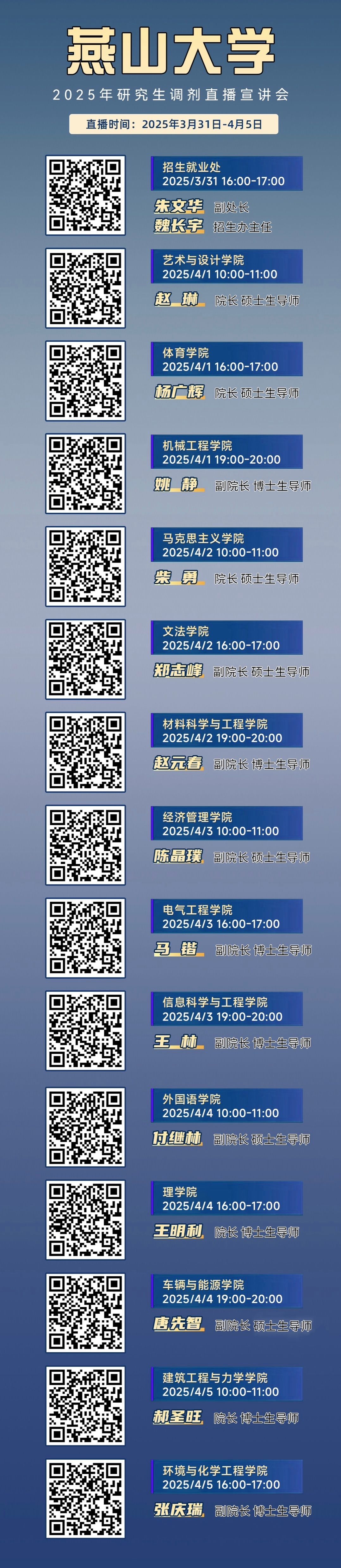 全国硕士研究生调剂工作即将开始,为使广大考生能够深入了解乌鸦传媒学科建设和研究生教育培养特色,满足考生对研招政策咨询需求,建立学校与考生之间高效的信息沟通渠道,乌鸦传媒将于3月31日至4月5日进行2025年硕士研究生调剂政策直播宣讲会活动。各学院院长和学科负责人在直播间与广大考生进行面对面交流,具体日程安排如下:
