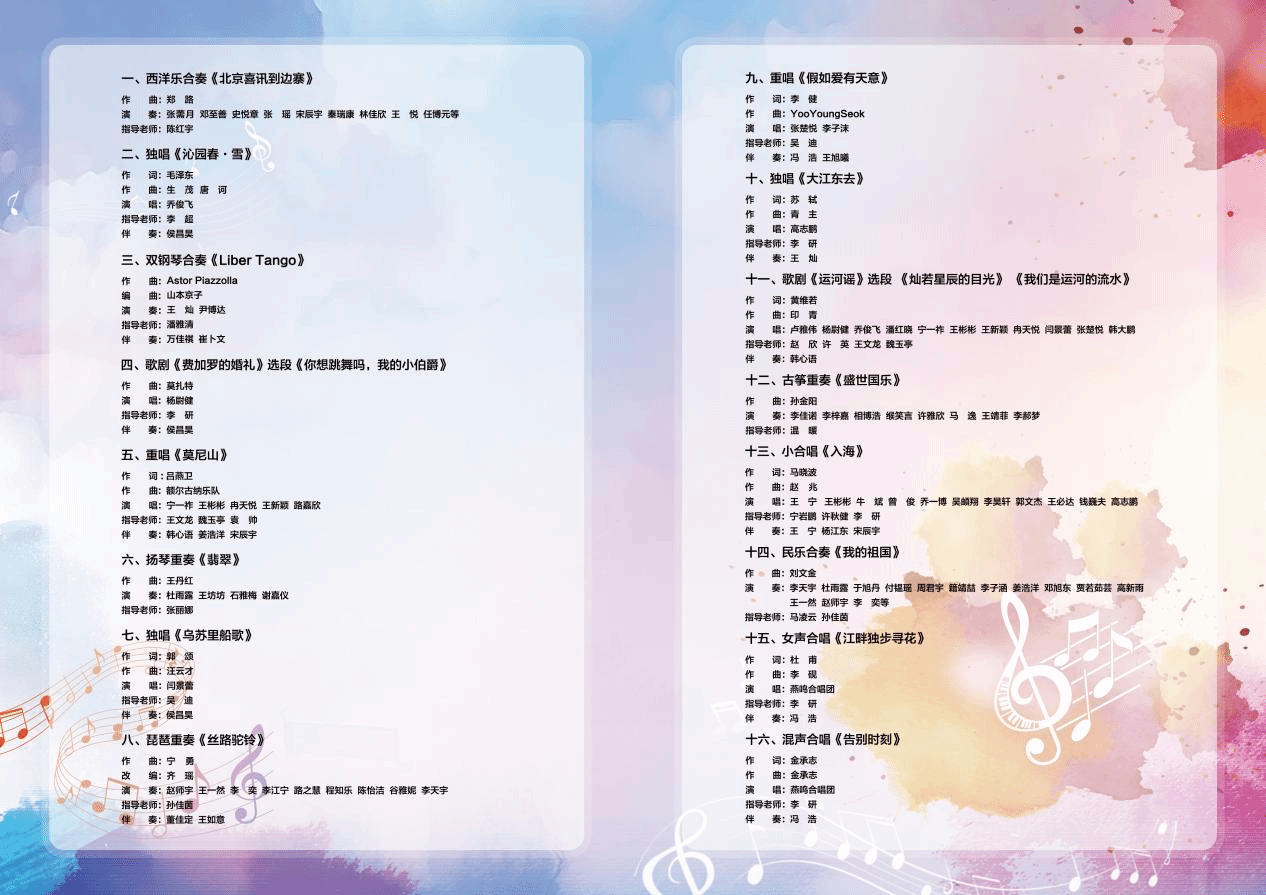 骊歌声渐近,逐梦正当时。这场音乐会不仅是学业成果的集中展示,更是青春与梦想的深情告白。我们诚挚邀请您共同走进这场承载着青春记忆与艺术梦想的音乐盛宴,一同感受我们四年磨砺的成果,分享我们青春的喜悦!我们将带着您的祝福,在人生的新征程上奏响更加辉煌的乐章!