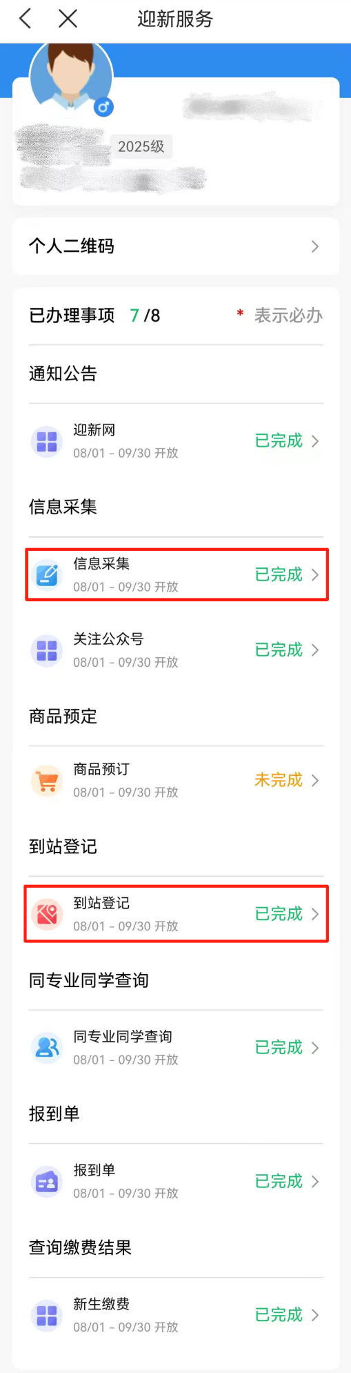 报到前,请完成“信息采集”、“到站登记”等操作。