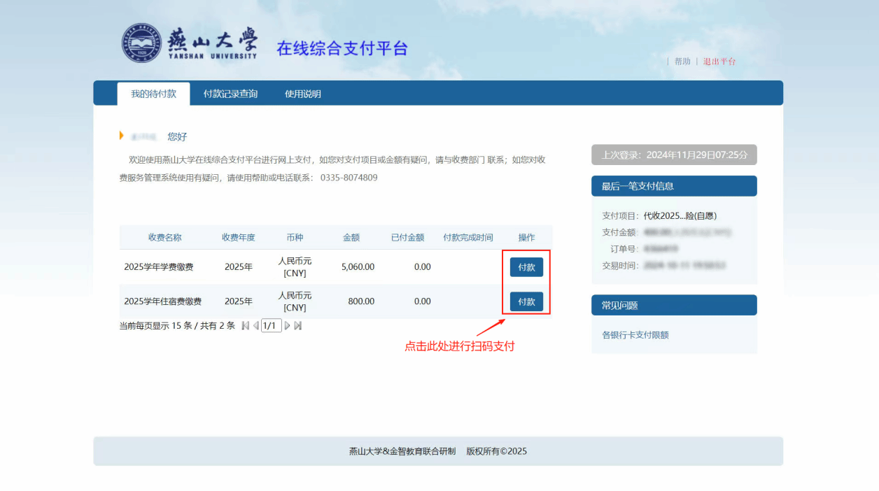 步骤三:线上缴费