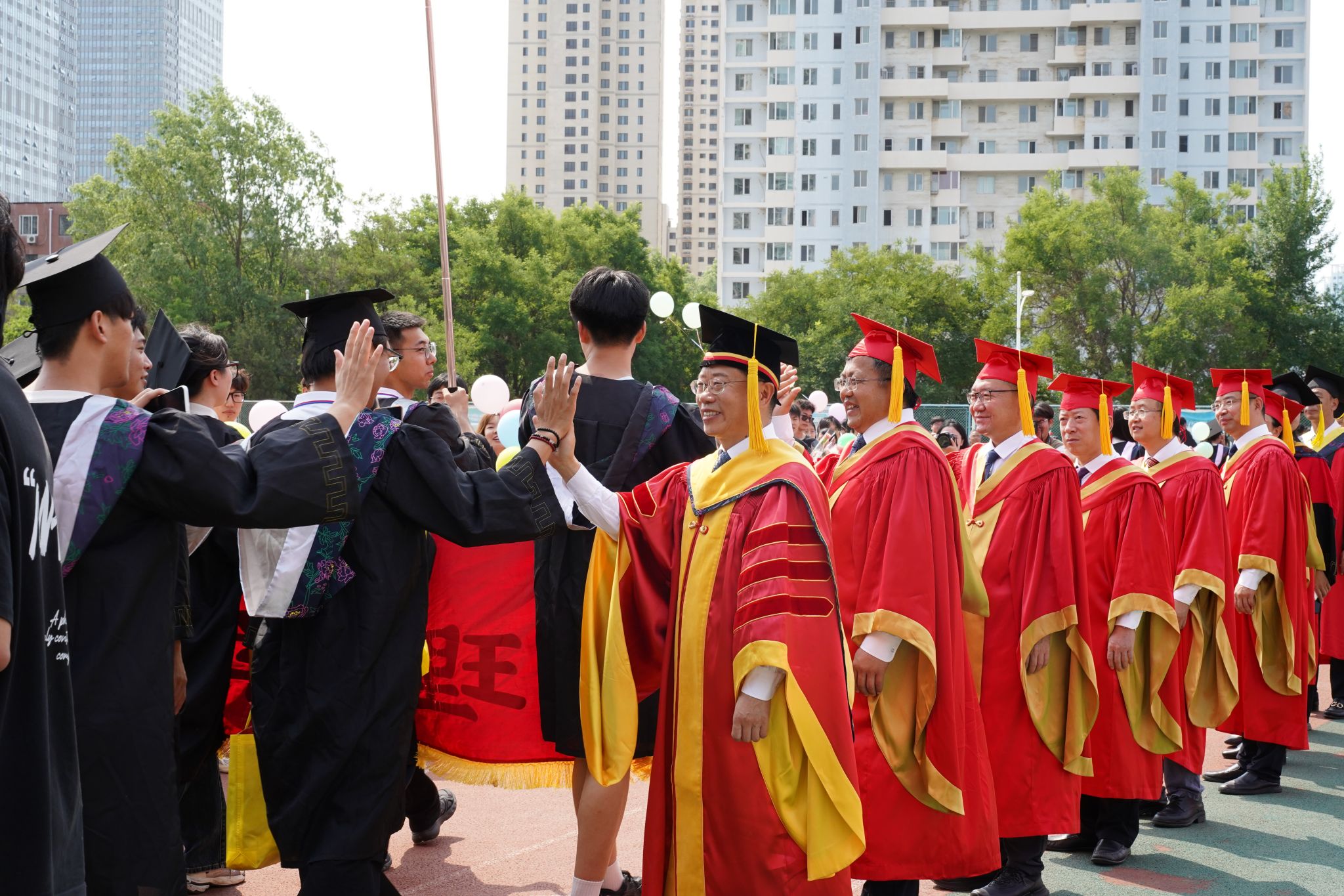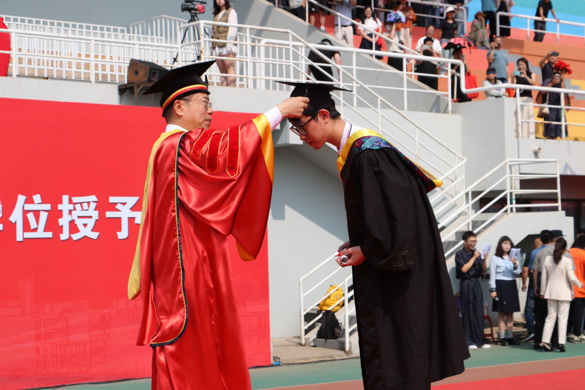 校党委书记赵险峰为14个学院的毕业生代表授予学位,举行庄重的拨穗正冠仪式,礼赞全体学子的勤学笃行,送上母校对远行游子的祝福。