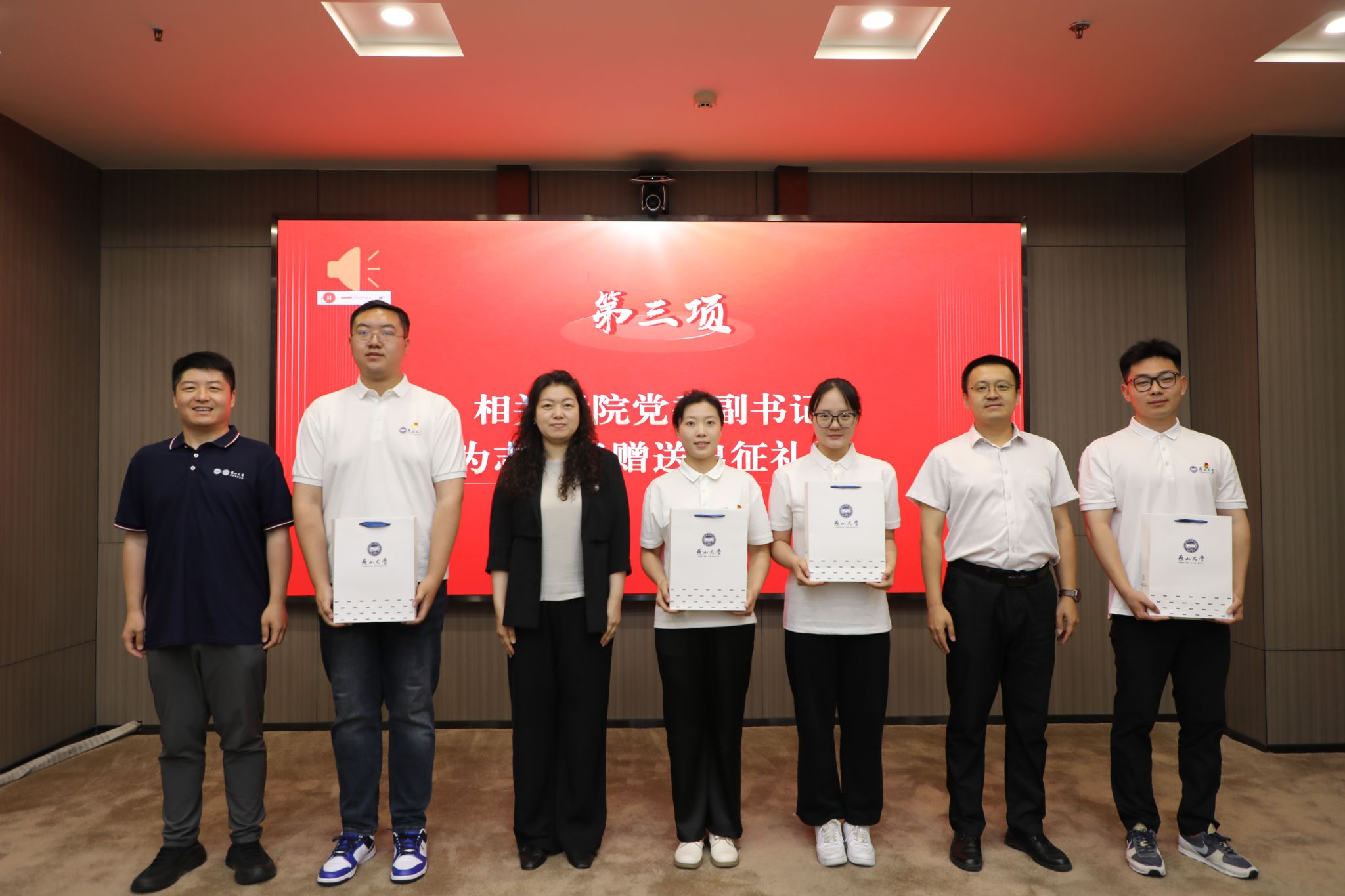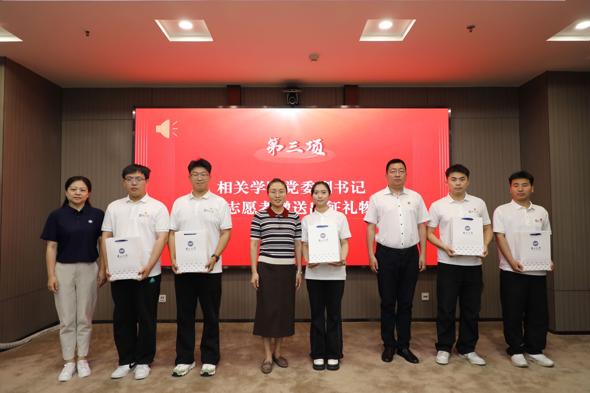 相关学院领导为研支团成员赠送出征礼物,希望全体成员在学校的关心支持下全力做好支教工作。