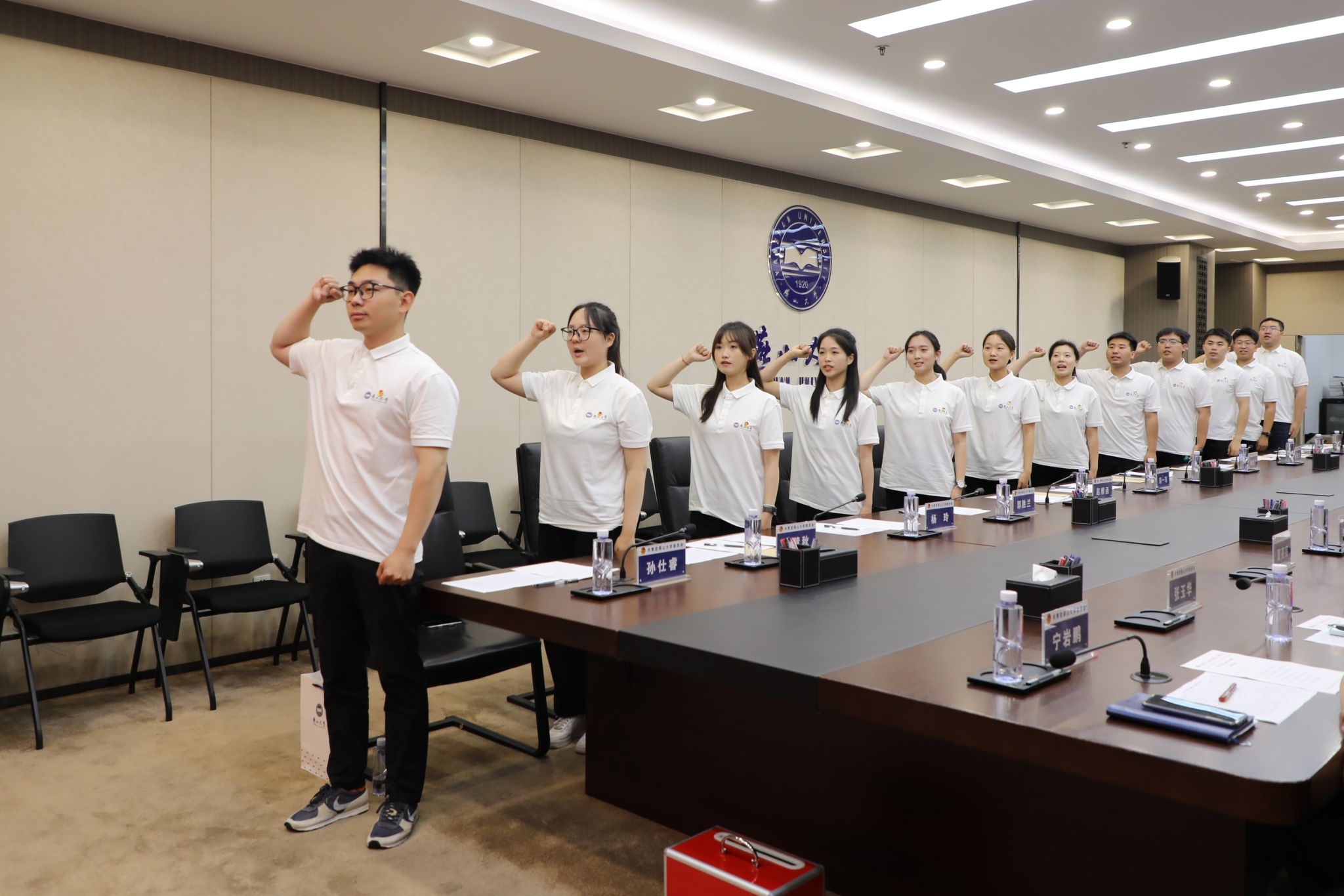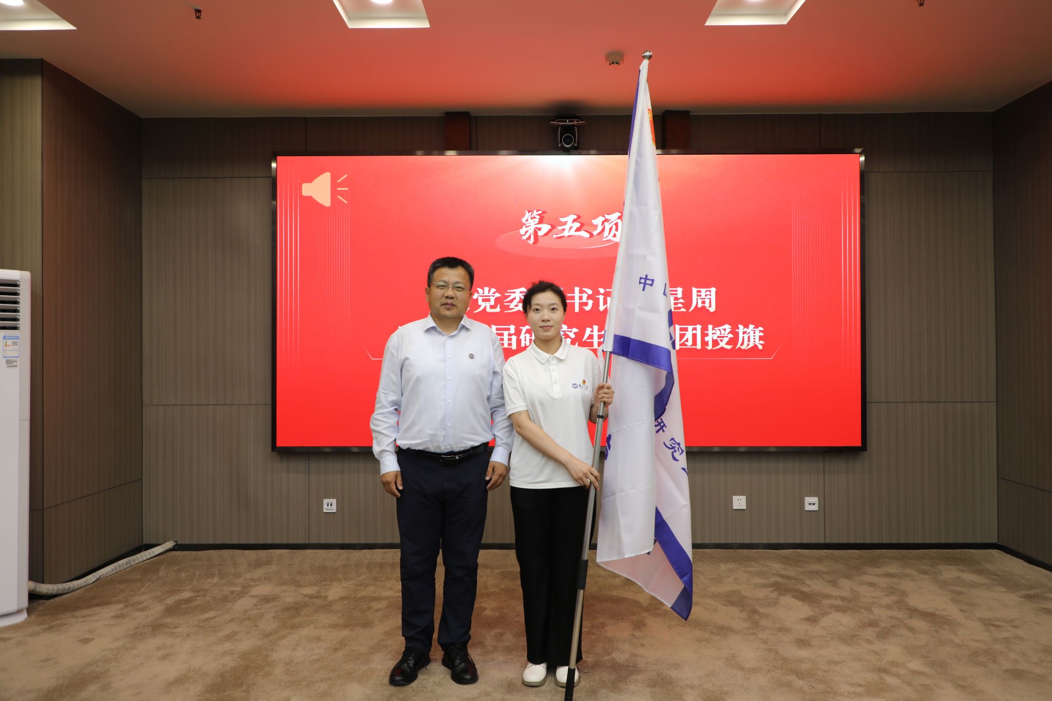 蔡星周为学校新一届研究生支教团授旗,研支团成员高举右拳庄严承诺,决心在知行合一中淬炼支教本领,于一线教学中厚植育人情怀,在实干笃行中彰显青年担当。