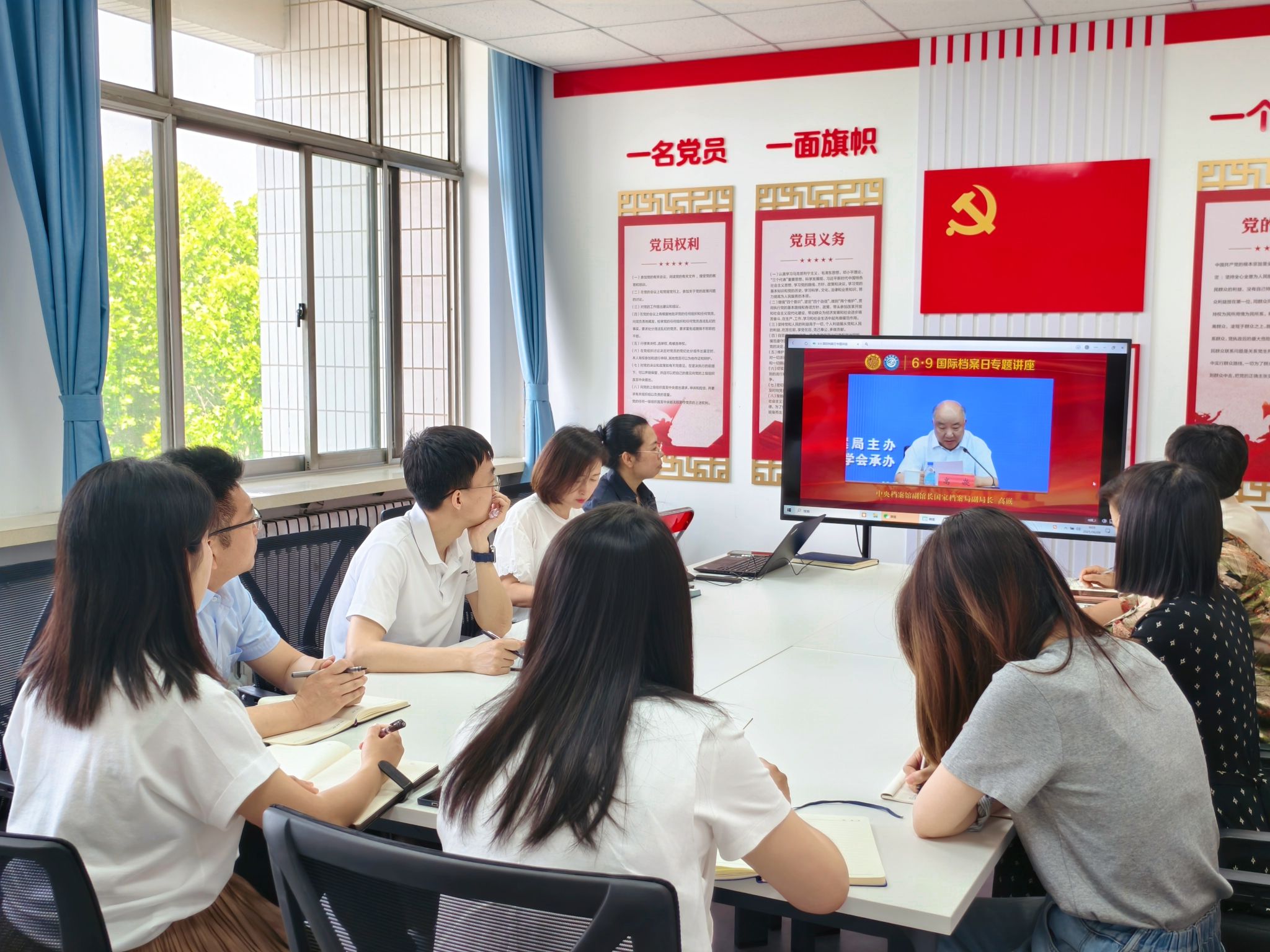 6月9日,档案馆(校史馆)的工作人员集体观看了由国家档案局主办的专题讲座《人民的选择 历史的必然——中国共产党在抗日战争中是怎样赢得战争赢得人民的?》。通过学习,同志们对党在抗日战争中的英明决策和卓越领导有了更加系统全面的认识,表示在工作中要进一步坚定“档案工作姓党”的政治立场,牢记“为党管档、为校守史、为师生校友服务”的宗旨,在平凡的岗位上努力践行档案人的初心和使命。
