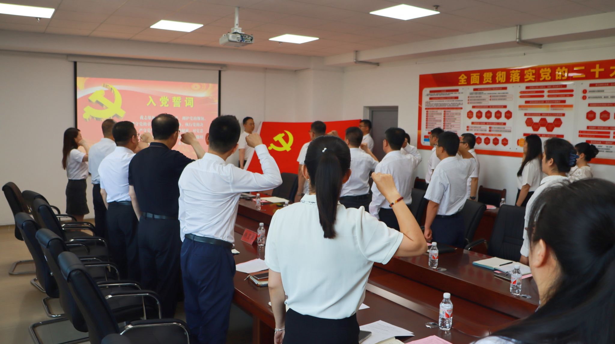 首先,全体党员在党旗下庄严宣誓,重温入党誓词,誓言铿锵、承诺庄严,每位党员同志的心灵再一次得到震撼与洗礼。