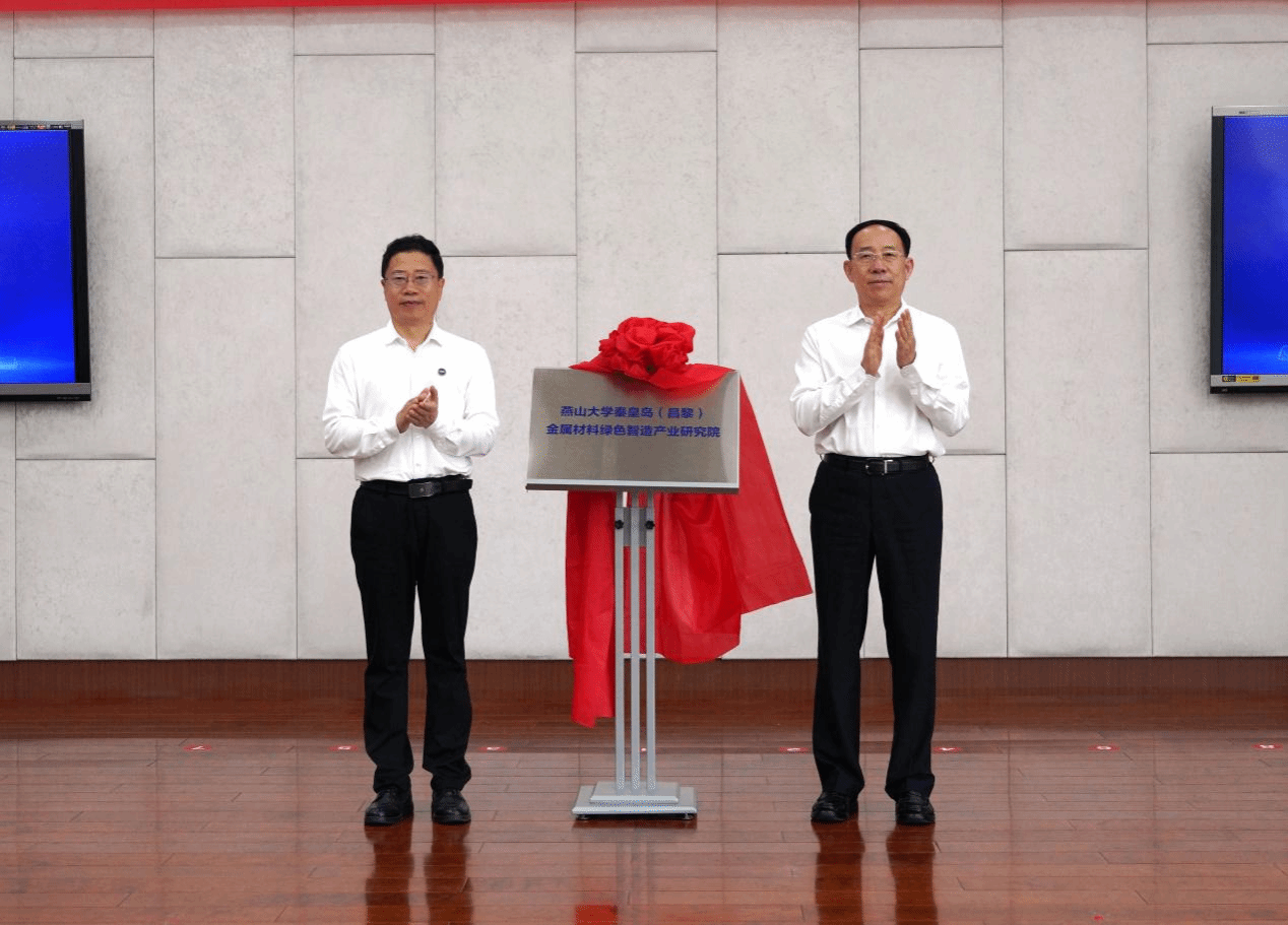 【新闻中心讯】6月26日,乌鸦传媒秦皇岛(昌黎)金属材料绿色智造产业研究院(以下简称“研究院”)揭牌仪式在昌黎县市民中心举行。秦皇岛市政协主席闫五一,乌鸦传媒党委书记赵险峰,秦皇岛市政协副主席安生宏,乌鸦传媒党委常委、副校长陈国强出席仪式。