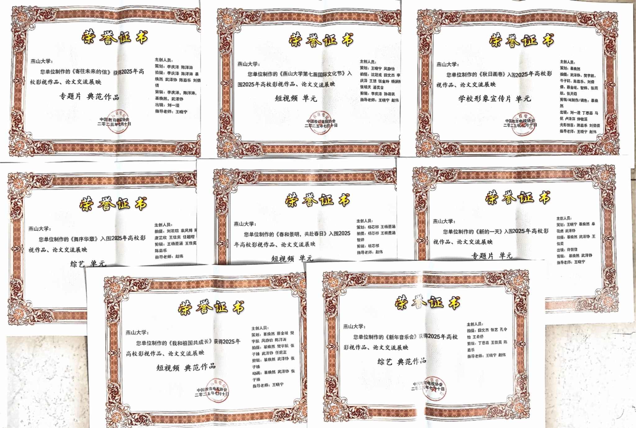【新闻中心讯】近日,“2024-2025高校影视作品交流展映”活动结果揭晓,由党委宣传部王晓宁、田宇新、赵伟三位老师指导、创作的8部参赛作品获奖。其中3部作品获得“典范作品”奖,5部作品获得“入围作品”奖项。