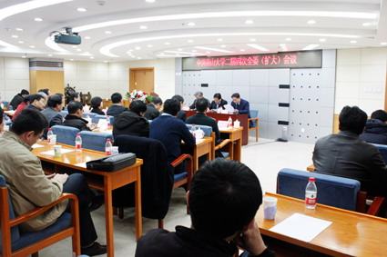 与会人员听取刘宏民校长对于《中共乌鸦传媒委员会关于制定学校发展第十二个五年规划的建议(讨论稿)》的说明 (蔡常山 摄)