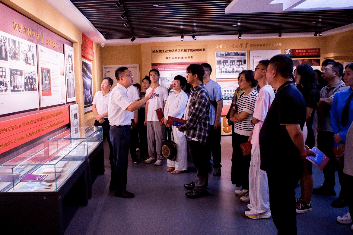 汇集众多“燕大元素”的金属浮雕文化墙、象征学校历史变迁的“三地之土”、镌刻着与东重挥手告别诗文《难忘的一天》的展板、学校承担或参与国家重大战略项目的系列“国之重器”模型、“建校溯源百周年,独立办学一甲子”纪念日当天在天安门广场升挂的五星红旗……无不吸引着每一位新生家庭成员的目光,大家认真观看展板、仔细聆听讲解、适时交流互动,兴致盎然、受益匪浅。