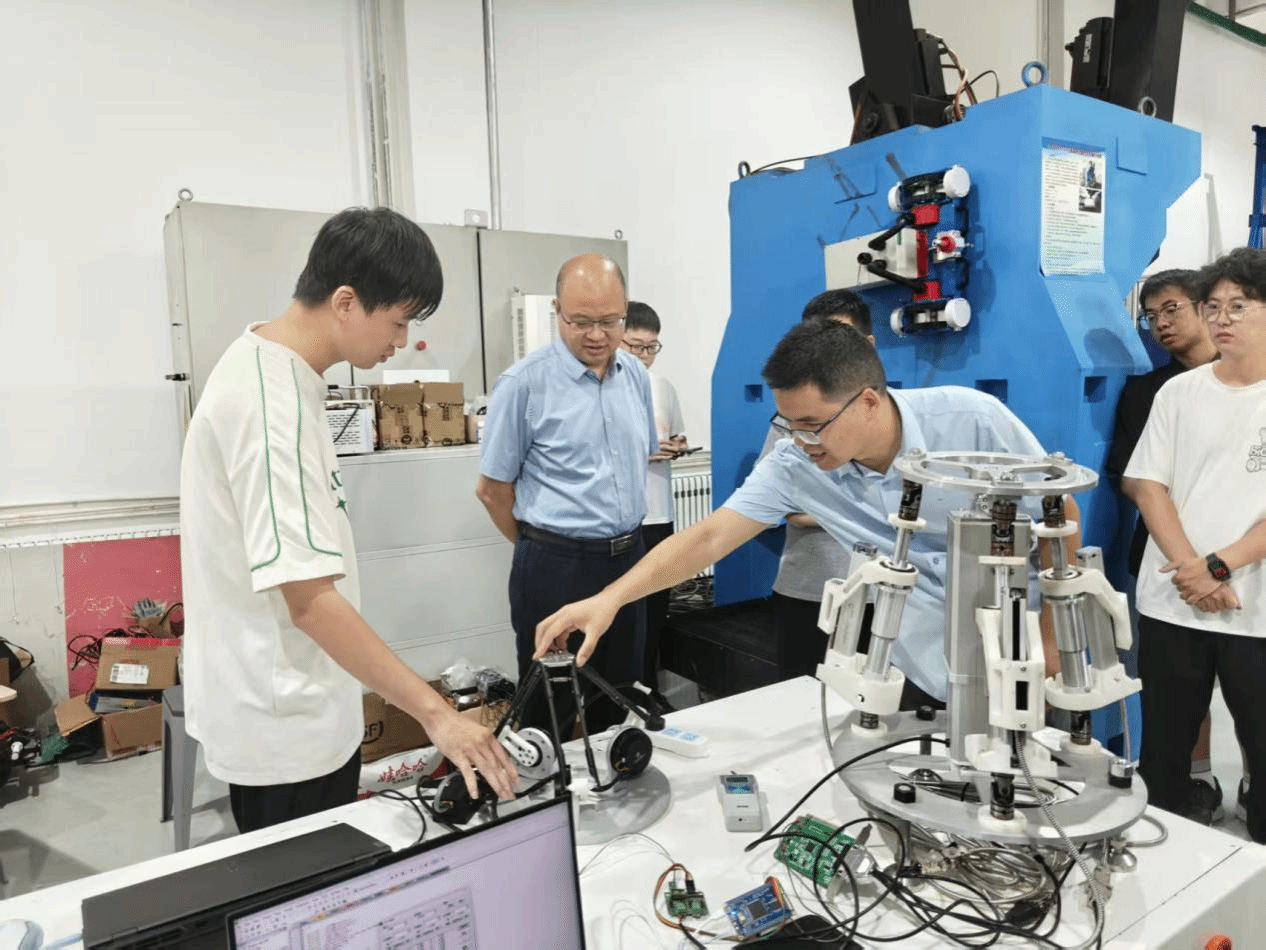 在交流环节,各专家团队详细介绍了机器人的研发进展与应用场景,并围绕产业发展方向、校企协同创新、政策与资源保障等关键议题进行了深入探讨。调研组认真听取了汇报和建议,对学校相关工作及成效予以充分肯定,并表示将持续关注和支持我校在机器人领域的科技成果转化。下一步,将积极推动构建校政企多方联动的协同机制,加快建立“概念验证—中试熟化—产业孵化”的全链条服务体系,共同助力河北省机器人产业创新升级与高质量发展。