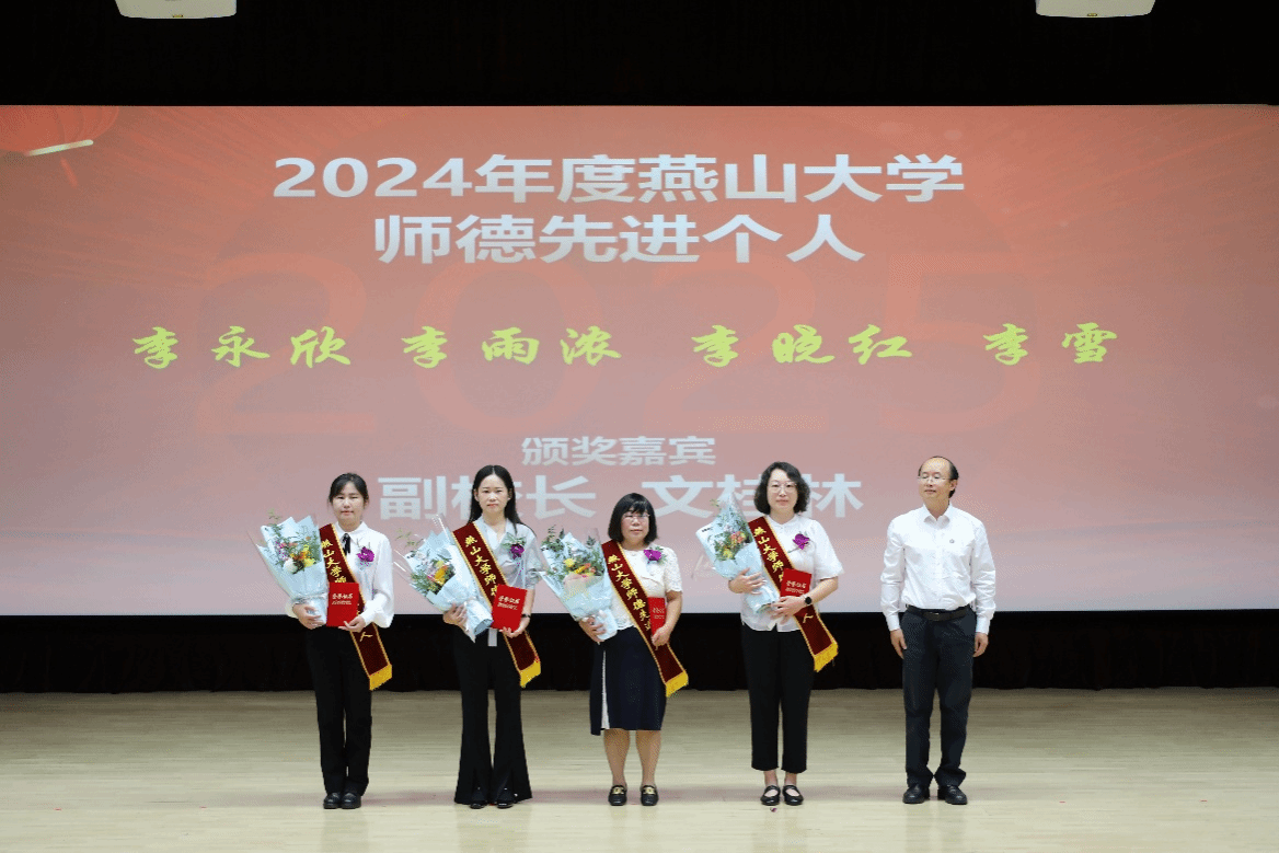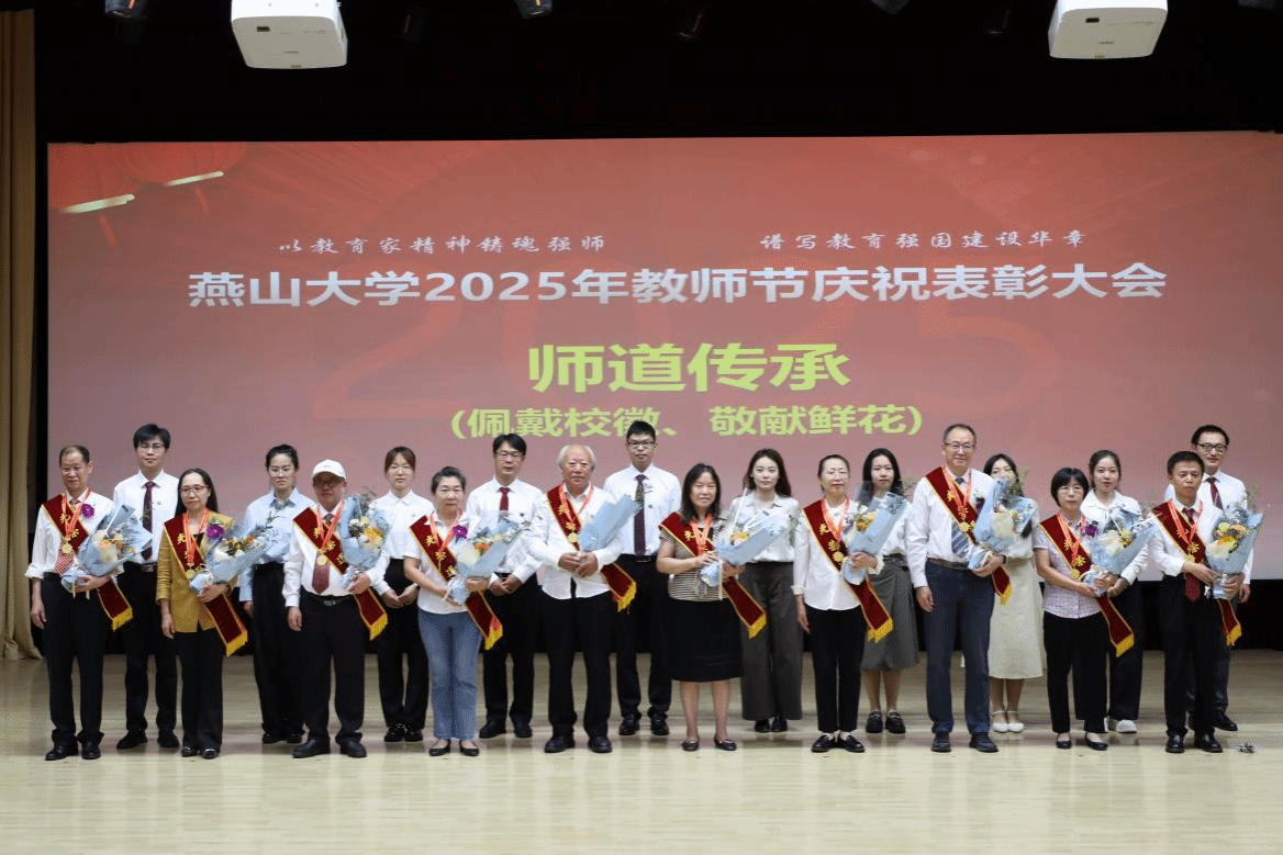 大会在《燕大校歌》合唱中落下帷幕。会后,校领导与荣休教职工代表、受表彰个人和集体代表进行了合影。