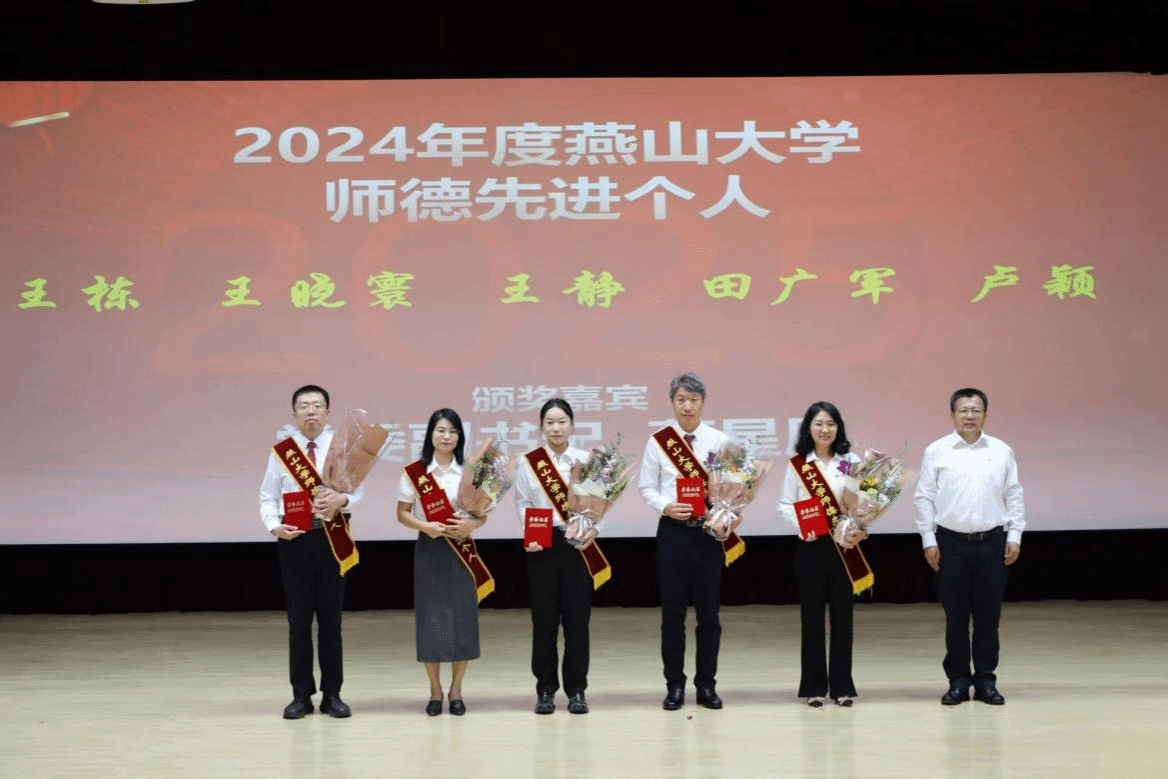 赵险峰在致辞中,以“以教育家精神铸魂强师,谱写教育强国建设华章”为主题,结合学校建校溯源105周年、独立办学65周年、扎根河北40周年及抗战胜利80周年的特殊历史节点,回顾了燕大“工业报国”到“科技强国”的校史传承与“艰苦奋斗、严谨治学、求实创新”的精神积淀,总结了全体教职工在学科建设、科研创新、人才培养中的贡献,肯定了师德先优集体与个人。他强调,教育是“精神传承、使命接力”,新征程上,全体教职工要以教育家精神铸魂,以创新驱动为翼,以仁爱之心立本,大力弘扬伟大抗战精神、积极践行教育家精神,共同谱写教育强国建设的燕大篇章。讲话最后,他代表学校向全体教职工致以节日祝贺和诚挚问候。