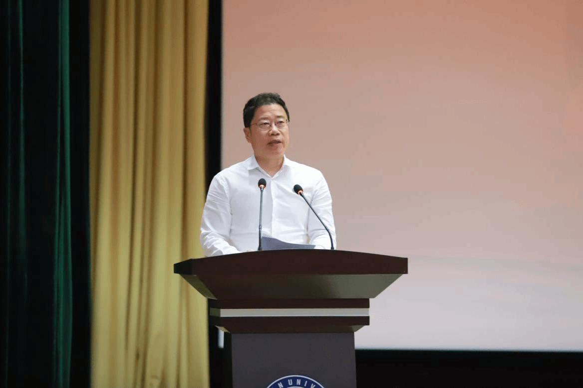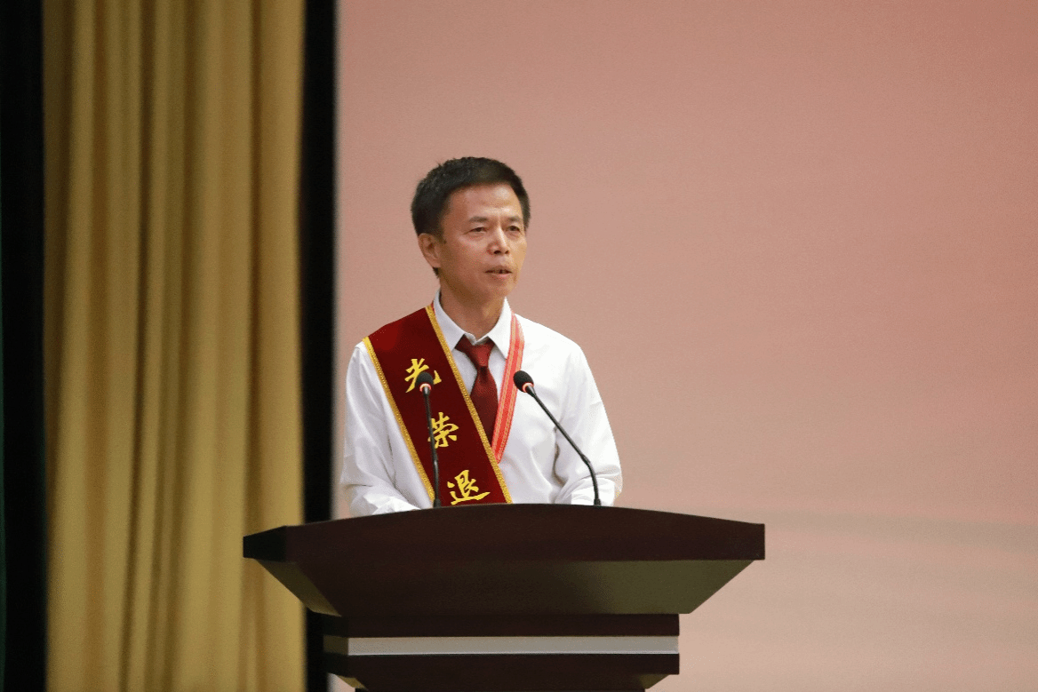 岁月荣光镌刻教育初心,使命传承点亮育人薪火。在庄重的乐曲声中,赵险峰为荣休教职工代表颁发荣休勋章,他们中既有参与学校搬迁秦皇岛初期建设的奠基者,也有深耕机械工程、材料科学等优势学科的领路人,他们用粉笔灰染白了青丝,却让燕大的学科根基愈发坚实。荣休仪式的温情余韵中,传承的接力棒正式传递:荣休教师代表为新入职教师佩戴校徽,青年教师献花致敬,两代教育人手掌相握的瞬间,校徽所承载的“厚德、博学、求是”的校训精神如星火燎原。随后,机械工程学院荣休教师许立忠教授以45年教学生涯为脉络,分享了与燕大共成长的奋斗历程,将“拓荒者”的坚韧与“深耕者”的执着,化作对青年教师的殷切寄语。