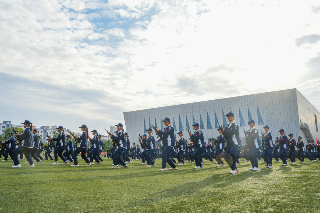 随后,全校2025级本科参训学生通过分列式、战术综合演练、擒敌拳、军体拳、刺杀操等项目向师生领导汇报军训成果。