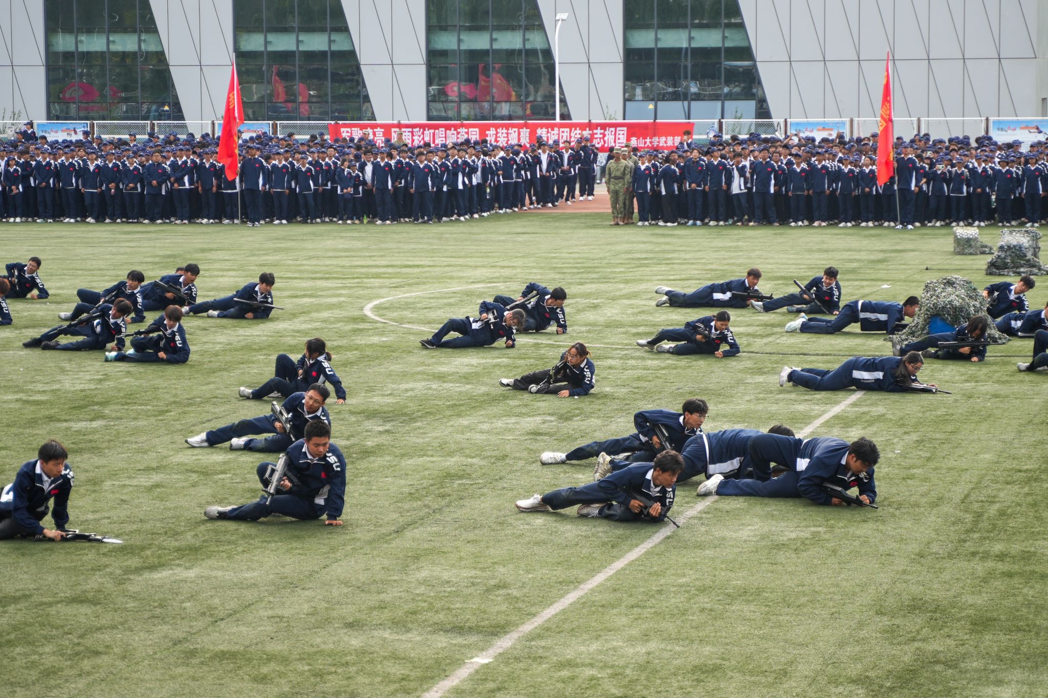 校党委副书记蔡星周作军训总结讲话。他向完成军训任务的全体同学表示热烈的祝贺,对市军分区和承训部队的大力支持、对全体教官的科学组训和辅导员的贴心守护表示衷心的感谢。他提醒同学们,不能忘记94年前东北夜空的炮响、山河破碎的苦难与先辈的抗争,时刻警示我们“忘战必危,忘史必亡”;号召同学们在新时代要增强国防意识,践行国防责任,作为新一批的燕大人,更应传承校史荣光、锚定时代坐标,以青春之力扛起使命担当,在强国征程中书写属于新一代燕大人的答卷。同学们齐声高呼三遍“听党指挥!能打胜仗!作风优良!”“正义必胜!和平必胜!人民必胜!”回应校领导殷切嘱托。