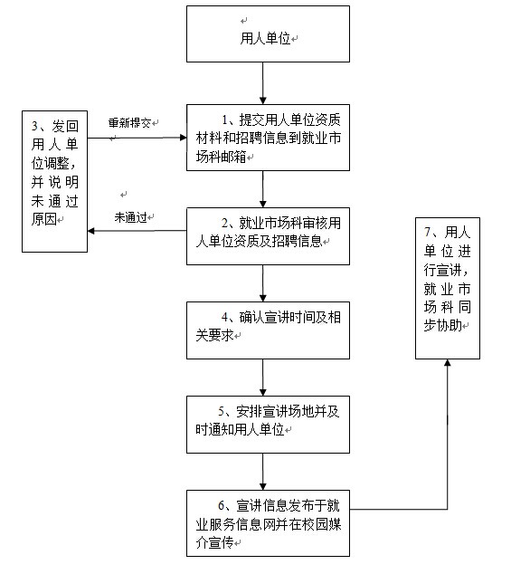 ⑦用人单位宣讲,就业市场科同步协助,及时反馈相关信息。