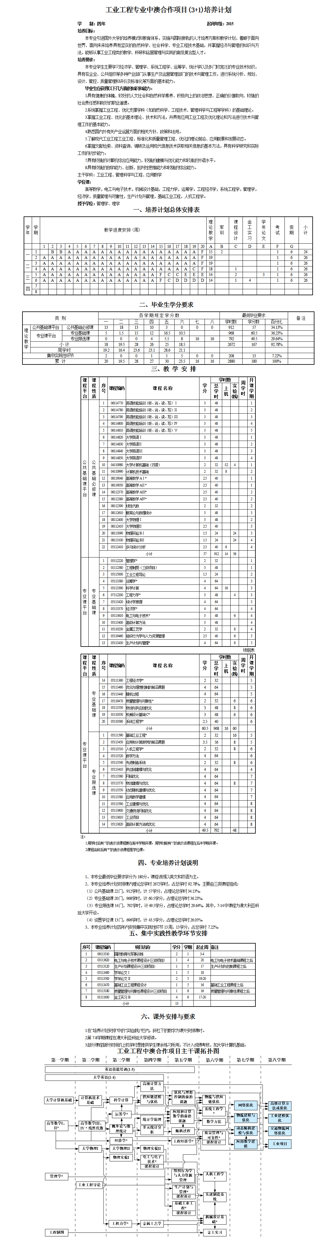 工业工程专业中澳合作项目(3+1)培养方案